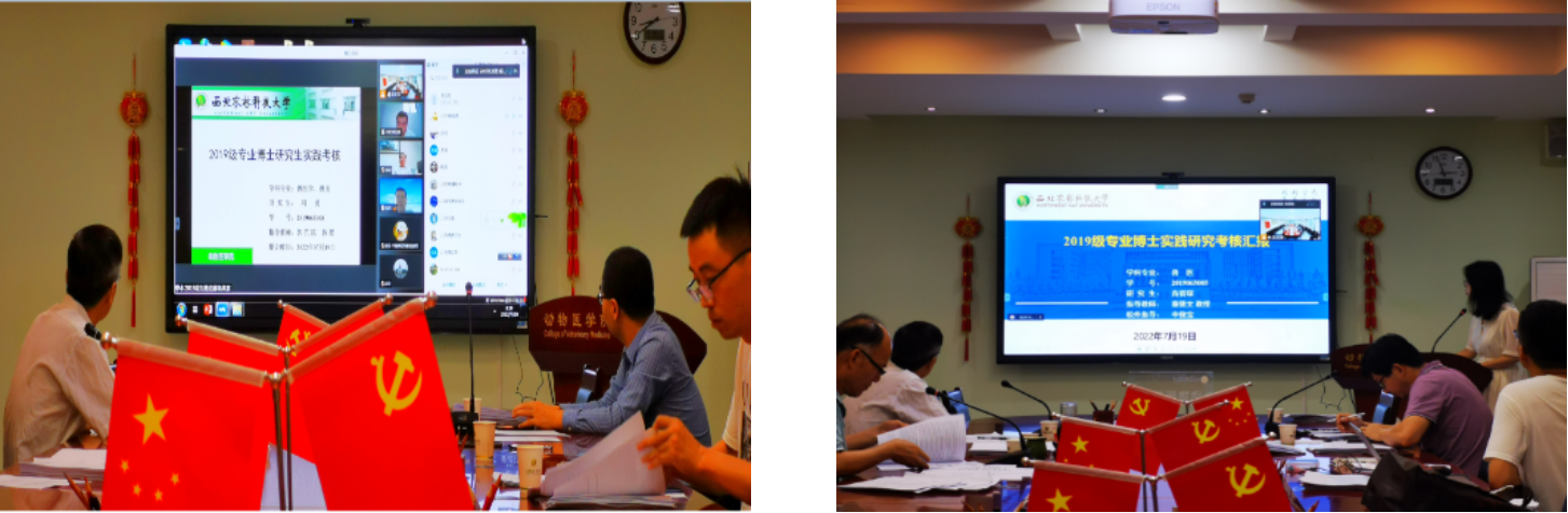 为加强研究生培养过程管理和提升实践育人成效,结合培养方案基本要求及学院关于研究生实践考核工作统一安排,我院于7月19日在学院4143会议室通过“线上+线下”的形式举行了2019级兽医博士实践考核。特邀中国兽医药品监察所李明研究员、宁夏回族自治区兽药饲料监察所杨奇研究员、中国农业大学动物医学院徐闯教授作为评委,考核组成员还有学院王晶钰教授、华进联教授、林鹏飞教授,考核组组长由兽医博士学位授权点负责人靳亚平教授担任。2020级和2021级兽医博士旁听汇报会观摩学习。