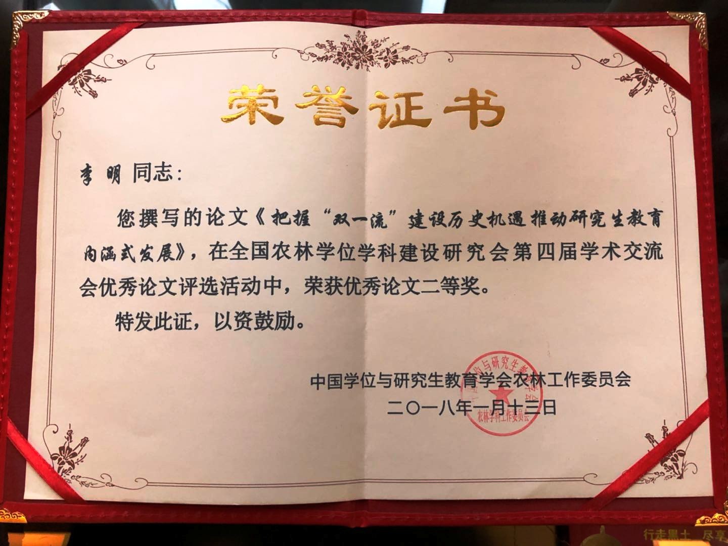 248cc永利集团派出了研究生院质量评估与监督处处长张建刚、植物保护学院研究生秘书李明两位同志参加了此次会议。李明同志的论文《把握“双一流”建设历史机遇,推动研究生教育内涵式发展》获评大会优秀论文二等奖。