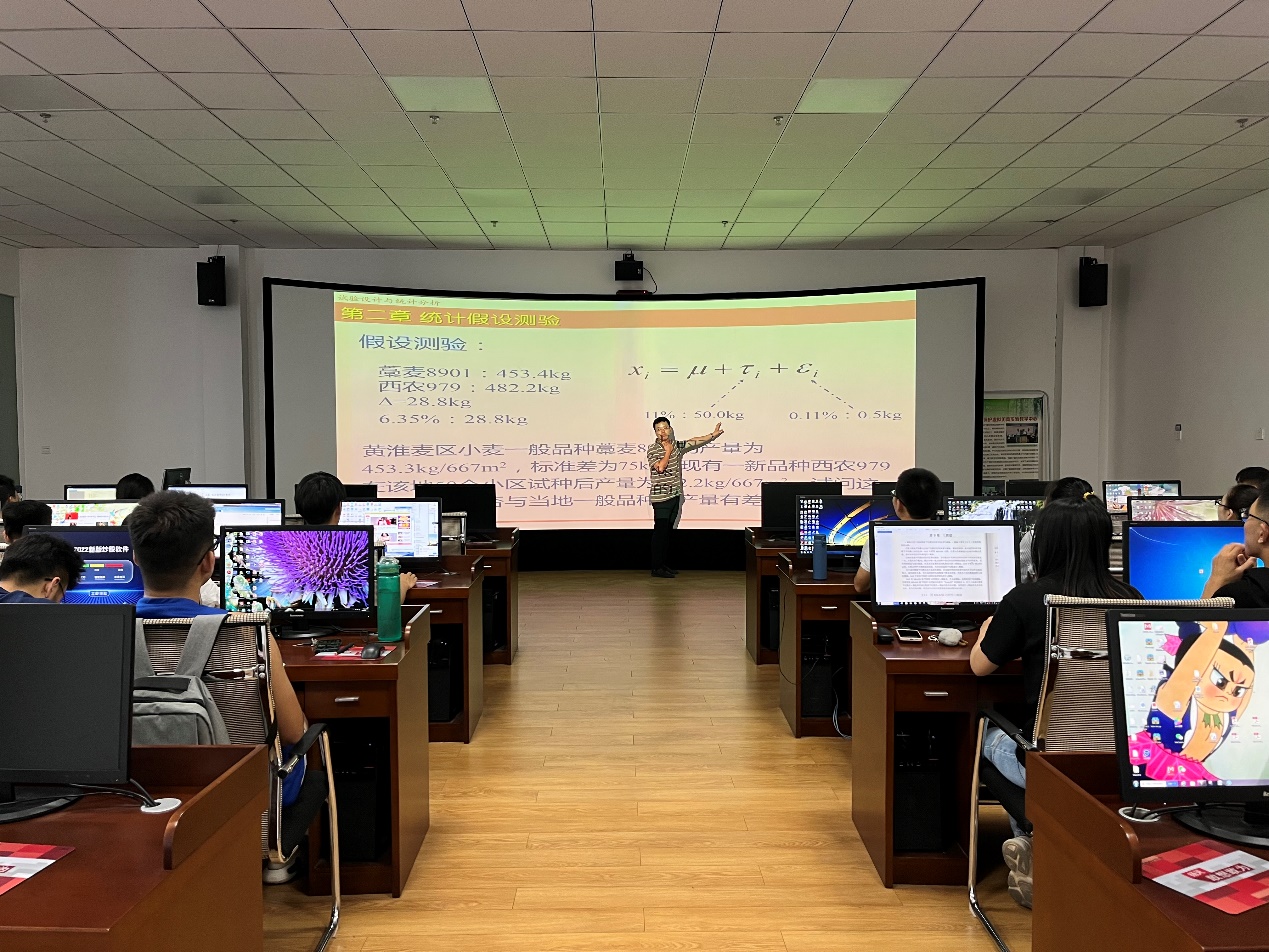 7月4日,《数据统计分析实训》开课。理论部分,主讲教师主要介绍了试验设计基本理论与基本方法、正交设计、数据分布、统计假设测验及方差分析、线性相关与回归、曲线回归等应用较多的数理知识。实操部分在虚拟仿真实验室开展,学生以自己科研中产生的数据上机统计分析,老师一对一进行辅导。该课程帮助同学们掌握了不同类型科研数据的处理及图表制作方法,对研究生开展论文工作大有裨益。