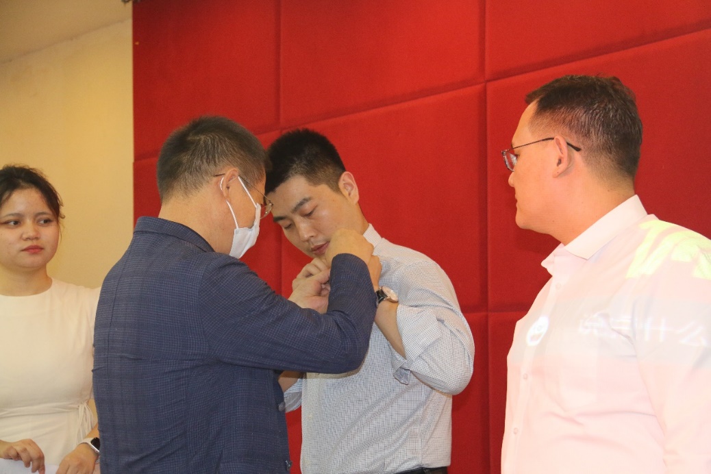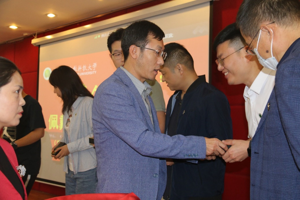 随后,在“西农人、西农印”校徽佩戴、名章赠送环节,经济管理学院党委书记张岁平,党委副书记张军驰郑重的为姜海朝、石如玉、冯方雷、董渊、刘正阳、杨强、李光杰、严静妮、税登鸿、韩祥军等十位新生代表,佩戴248cc永利集团校徽、赠送由西农篆刻协会制作的刻有院训的姓名印章。校徽是学校的重要标志之一,佩戴校徽是学子身份的象征和爱校荣校的具体展现,不仅是一种仪式,胸前佩戴校徽的那一刻,学子与248cc永利集团就有了千丝万缕的联系并将逐渐融为一体。从此,生命里将深深嵌入“西农印”记。校徽佩胸前,责任担在肩,在惠煜、李光杰、徐真三位同学带领下,全体在场同学和线上同学庄严宣誓:谨记西农校训,热爱祖国,忠于人民;诚信正直,尊师重道;勤奋学习,积极创新;担当责任,追求卓越;以工商管理之学识,成经世济民之英才!